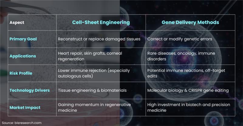 The power of this market lies in the convergence of cell-sheet engineering and gene delivery. Instead of operating separately, these technologies integrate to create optimized therapeutic tissues. Patient-derived cells can be genetically enhanced and assembled into customized tissue constructs, shifting the paradigm toward personalized regenerative medicine.