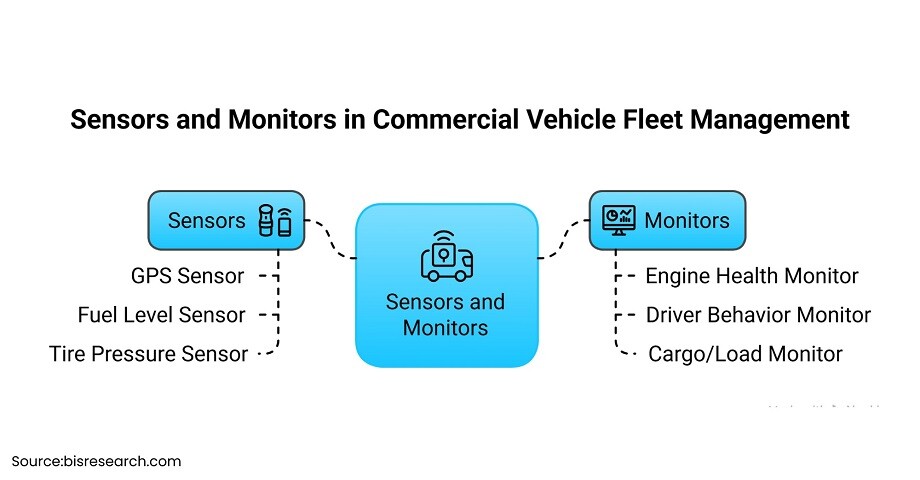 Sensors and monitors market for commercial vehicle fleet management play a vital role in enhancing safety, efficiency, and real-time tracking. Here's a breakdown of the key types: