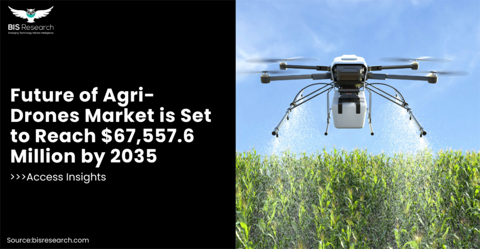 According to BIS Research, future of agri-drones market was valued at $3,936.2 million in 2024 and is projected to reach $67,557.6 million by 2035, growing at a CAGR of 29.53%.