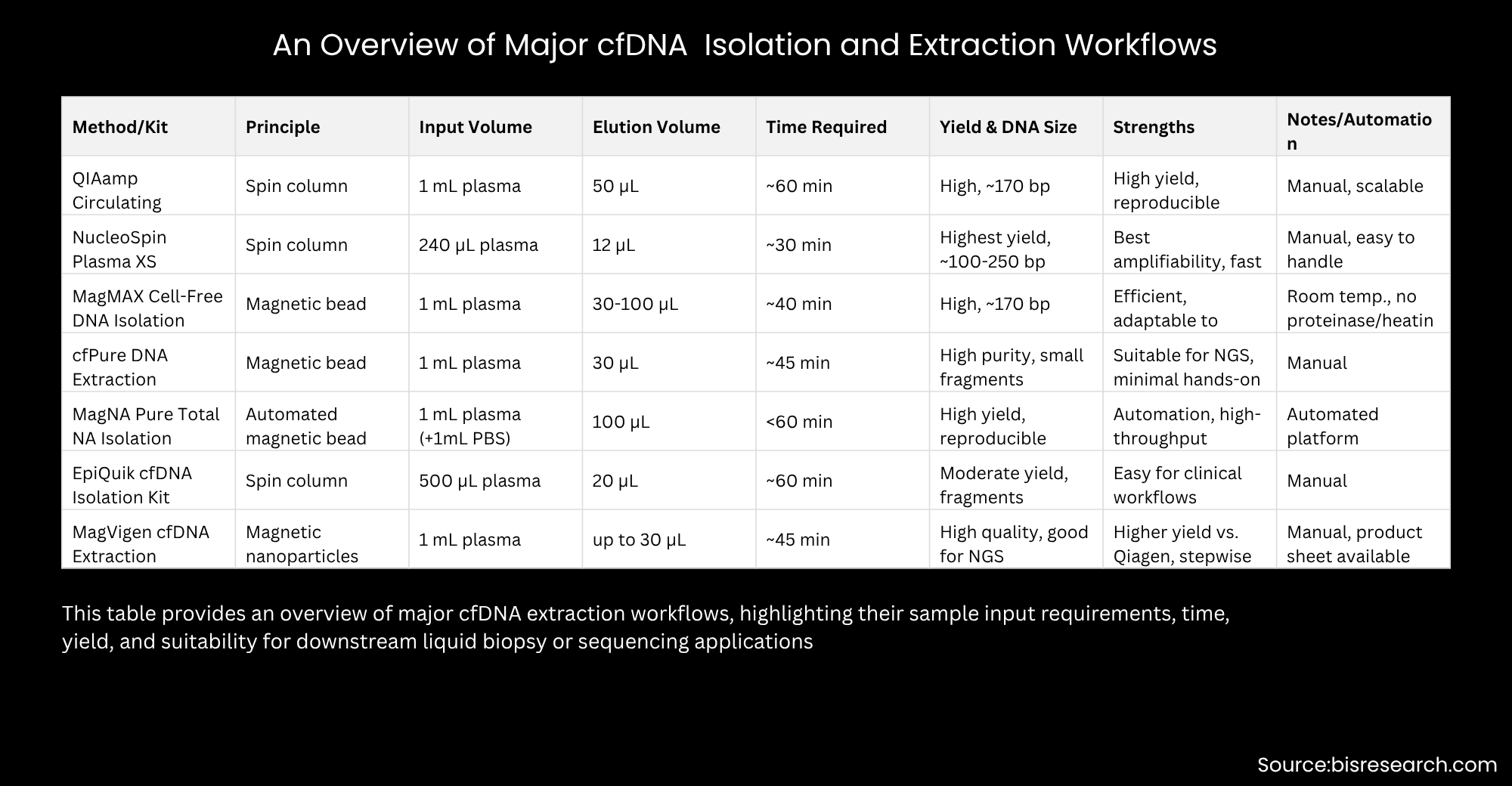 Automated platforms such as Thermo Fisher’s MagMAX™ system and Omega Bio-tek’s Mag-Bind® LSP Kit, enabling high-throughput cfDNA extraction across 96 samples in under four hours—reducing errors and improving reproducibility.