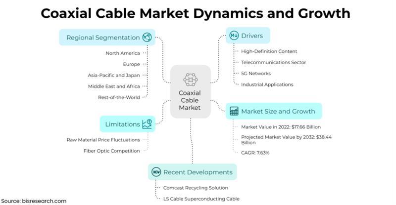 Specializes in RF and coaxial cable assemblies for aerospace, military, and telecom, renowned for high-frequency stability, rugged designs, and 5G support.Alt image text- Coaxial Cable Market Dynamics and Growth