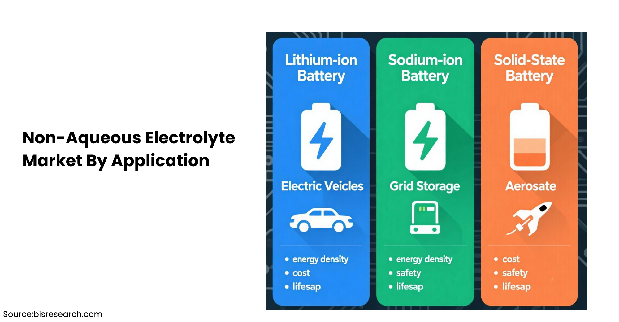 Recent advancements are accelerating commercialization. Researchers have developed fluorinated carbonates and ionic liquid additives that suppress dendrite formation in lithium-metal batteries, improving both safety and stability. In parallel, companies are engineering gel-polymer and hybrid non-aqueous electrolytes to reduce flammability risks while maintaining high ionic conductivity. Global players are also moving fast: Toyota and Panasonic are pushing solid-state batteries that leverage non-aqueous electrolyte innovations for ultra-fast charging and longer driving ranges, while SES AI and QuantumScape report breakthroughs in hybrid electrolyte systems that bridge liquid and solid performance advantages.
