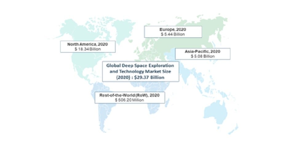 The current market is expanding as countries are expanding their space tech budgets. BIS Research report evaluated global deep space exploration and technology market size in 2020. North America is expected to dominate the market with an estimated share of 62.45% in 2020. Its total market size is estimated to be $18.34 billion in 2020 and is projected to reach $33.90 billion by 2030, registering a CAGR of 6.33% during the forecast period 2020-2030.